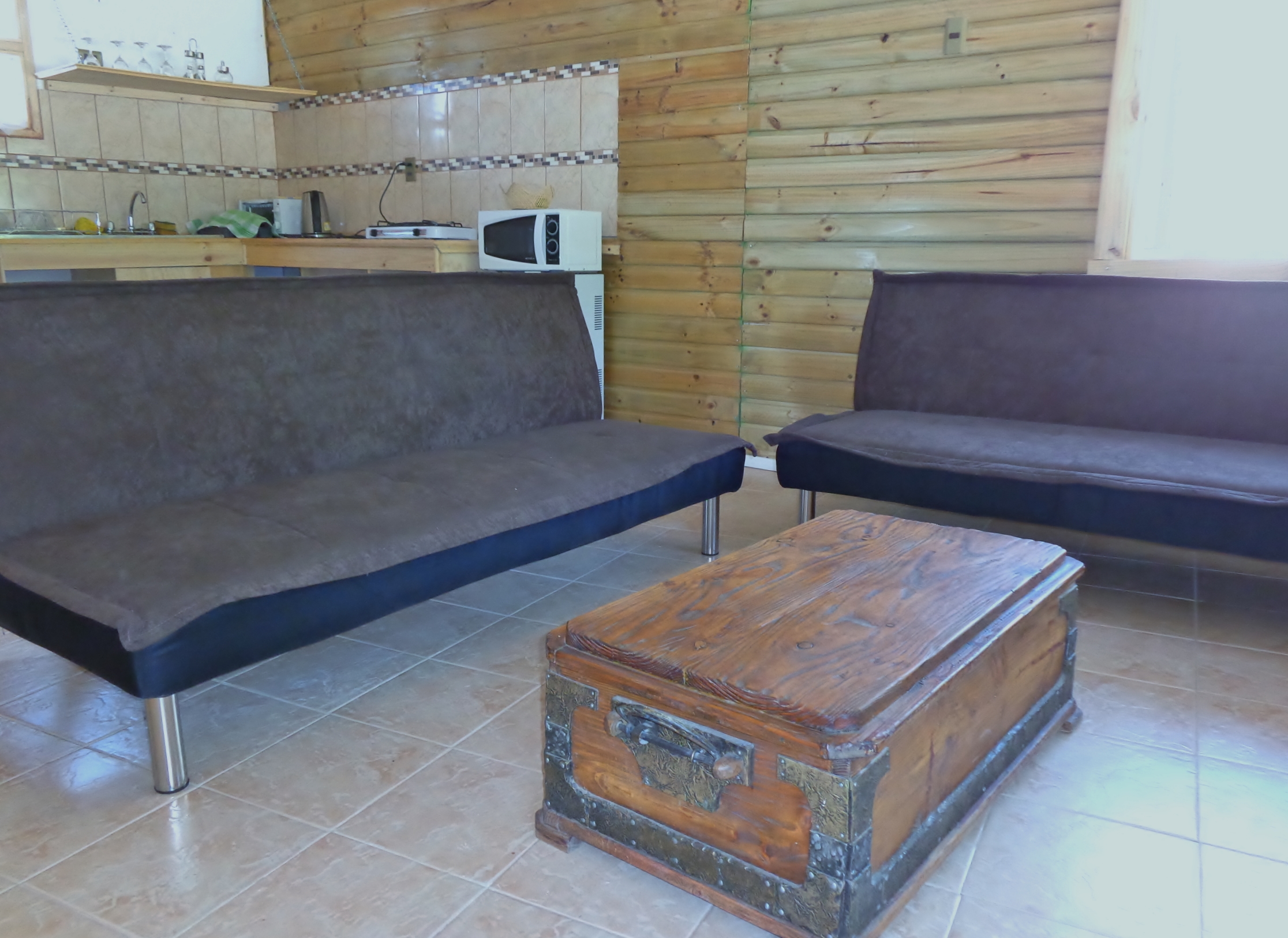 A cozy living room, where you can relax and play chess, backgammon, parcheesi, mancala, etc.  The coffee table is actually a trunk made of distressed wood by a local artisan, and it contains the board games as well as the linen for the two futons, which turn into two more beds.