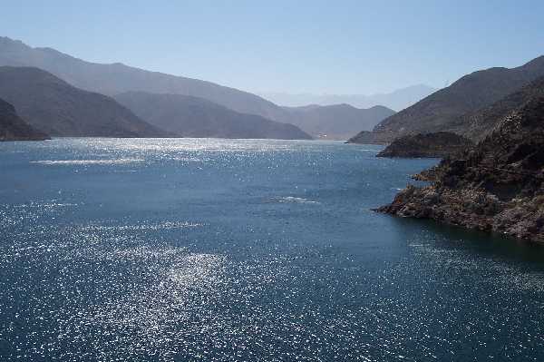 Dada la escasez de lluvia, la clave de la fecundidad del Valle Elqui es el regadío. Este embalse, llamado Puclaro, queda a unos 15 minutos al poniente de la